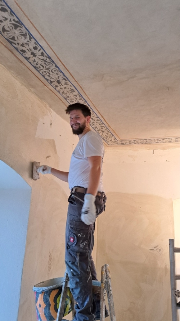 Ein besonderer Schwerpunkt liegt auf der Kirchenmalerei mit Kalk sowie auf Verputzarbeiten mit Kalk.